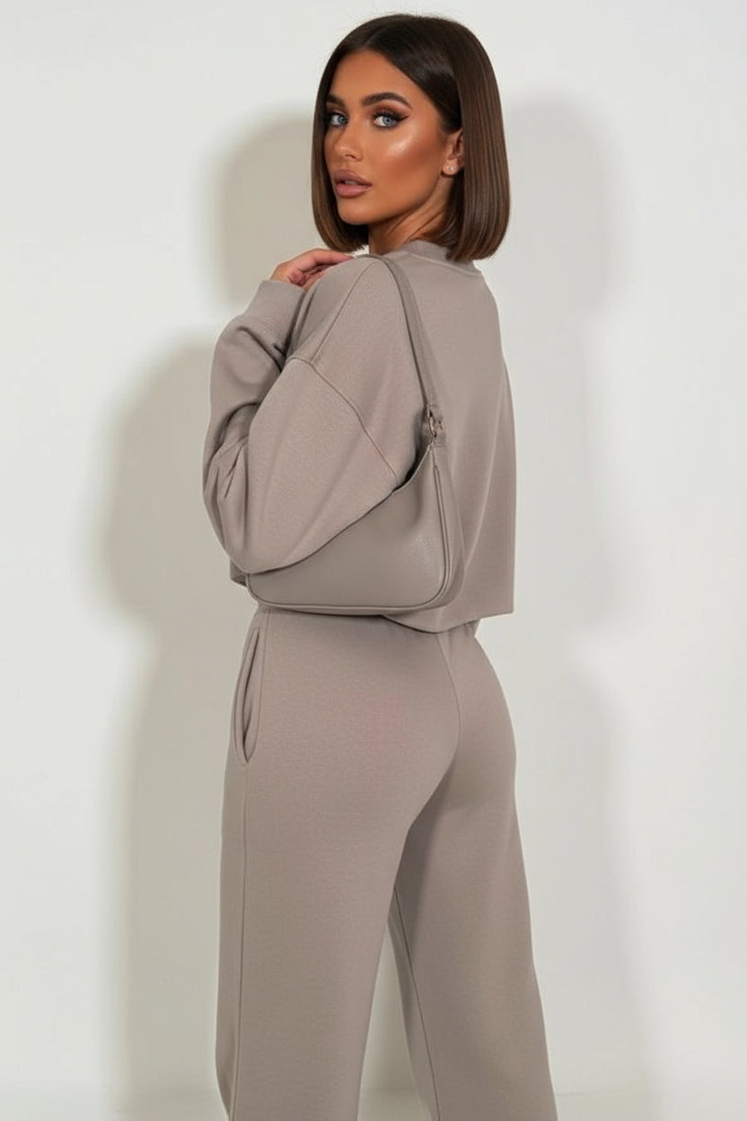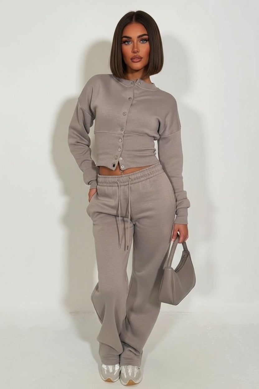 Button Up Corset Sweatshirt & Jogger Tracksuit Grey