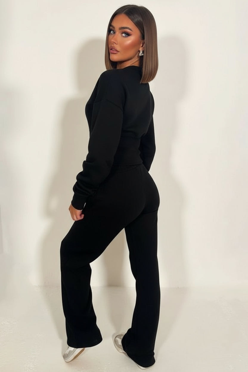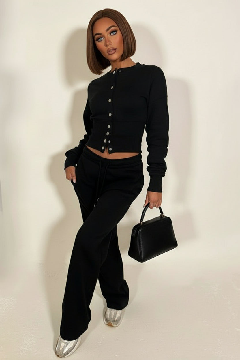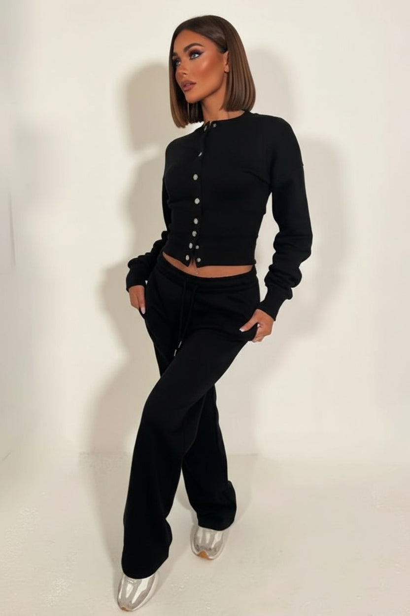 Button Up Corset Sweatshirt & Jogger Tracksuit Black