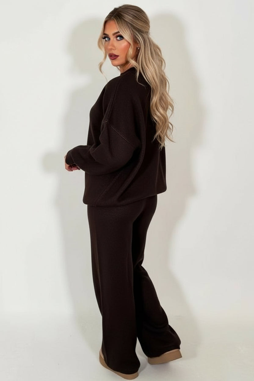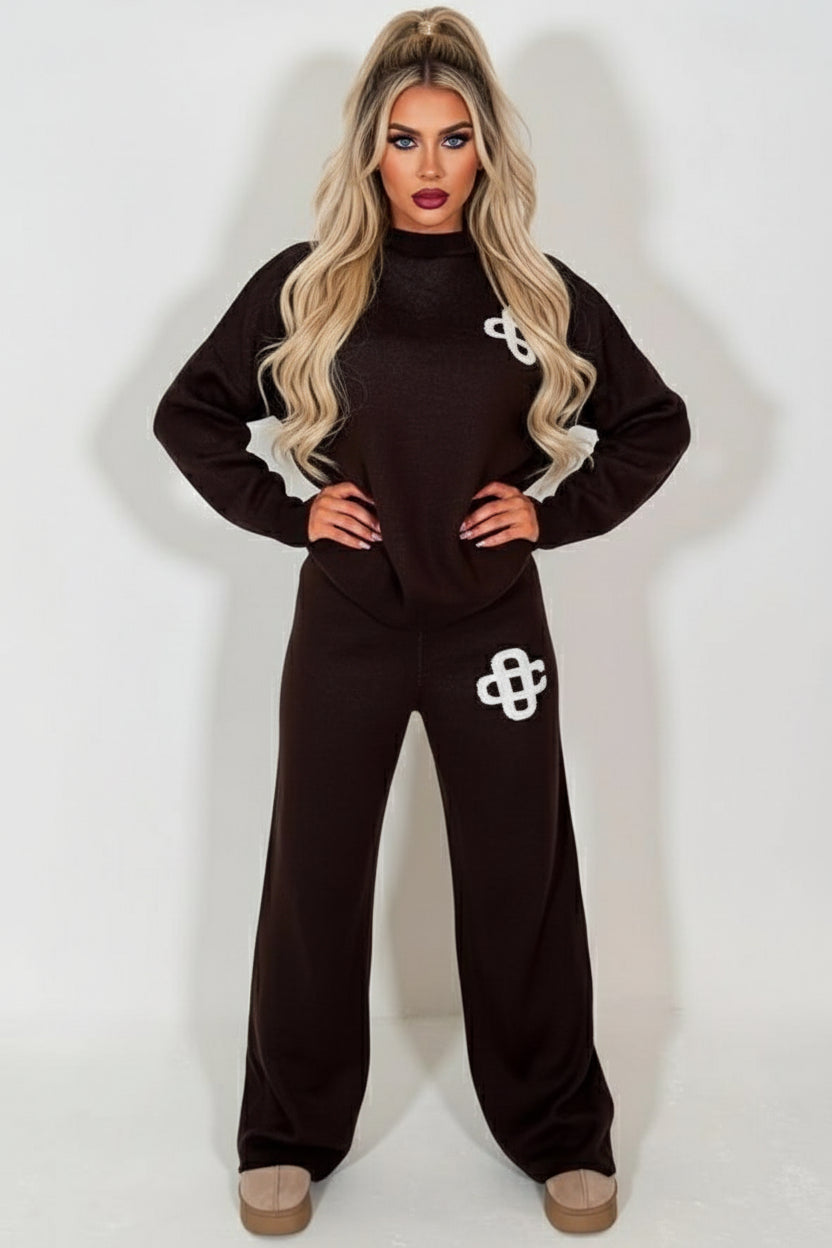 Sink into ultimate comfort with this beautifully crafted knitted lounge set in brown. Featuring a striking contrast emblem detail, it effortlessly blends style with relaxation. The premium knit fabric offers a luxurious feel against your skin, while the coordinated two-piece design ensures a polished, put-together look whether you're unwinding at home or stepping out casually. Perfect for those who refuse to compromise on comfort or aesthetics, this versatile set becomes an instant wardrobe essential for cosy days and laid-back evenings.