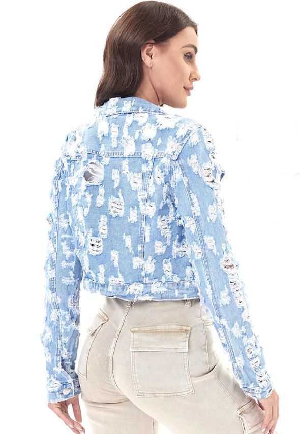 Effortlessly cool and undeniably versatile, this frayed button-up denim jacket is a wardrobe essential. Crafted from classic denim with intentional distressing for an on-trend, lived-in look, it layers perfectly over everything from t-shirts to dresses. The relaxed fit and traditional button closure make it easy to style, while the frayed detailing adds character and edge. Whether you're dressing down jeans or elevating a casual outfit, this jacket delivers timeless appeal with contemporary flair.