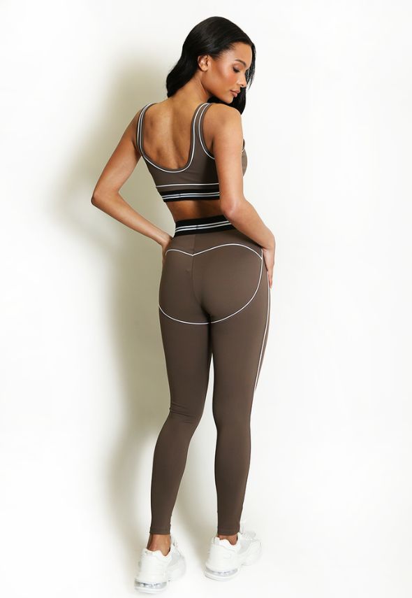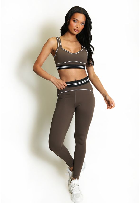 Striped Band Gym Crop Top And Legging Set Brown