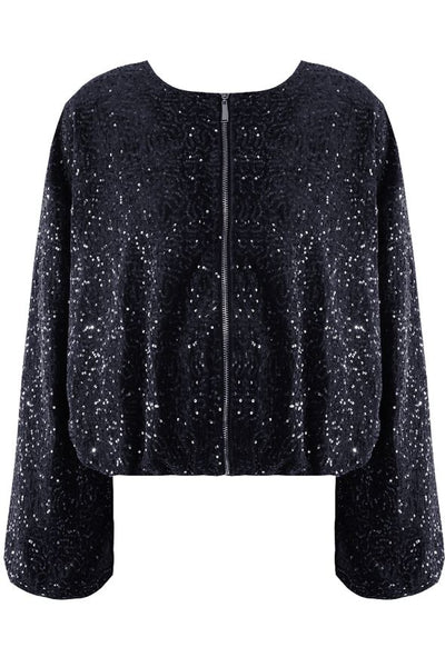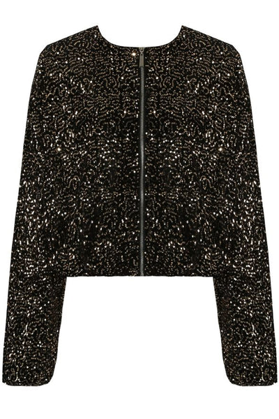 Black Faux Fur Faux Leather Bomber Jacket With Gold Buttons