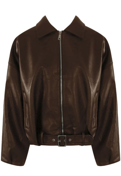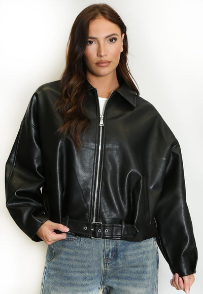 Black Varsity Bomber Faux Leather Jacket With Letter Detail