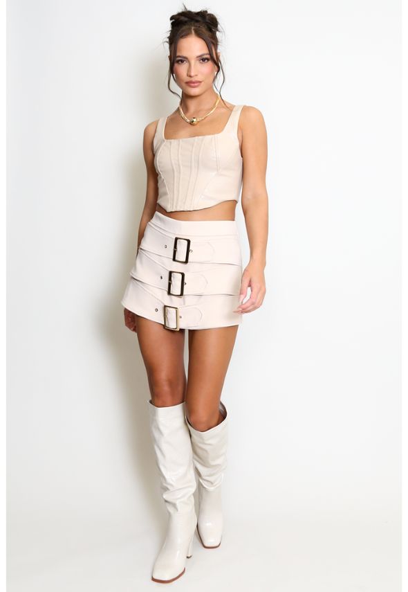 Elevate your wardrobe with this versatile Triple Front Belt Skort in soft beige. Featuring a distinctive triple front belt design that adds contemporary flair, this piece seamlessly transitions from casual outings to smart-casual occasions. The skort silhouette offers the comfort of shorts with the polished appearance of a skirt, making it an ideal choice for those seeking style without compromise. Perfect for layering or wearing solo, this neutral tone pairs effortlessly with any top in your collection.