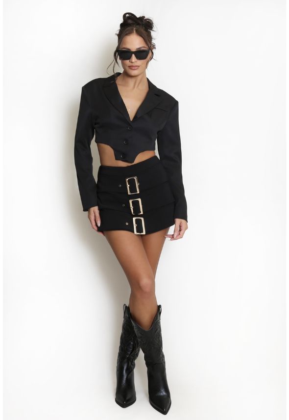 Elevate your wardrobe with this versatile Triple Front Belt Skort in Black. Featuring a distinctive triple front belt design that adds contemporary flair, this piece seamlessly transitions from casual outings to smart-casual occasions. The skort silhouette offers the comfort of shorts with the polished appearance of a skirt, making it an ideal choice for those seeking style without compromise. Perfect for layering or wearing solo, this neutral tone pairs effortlessly with any top in your collection.