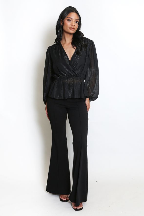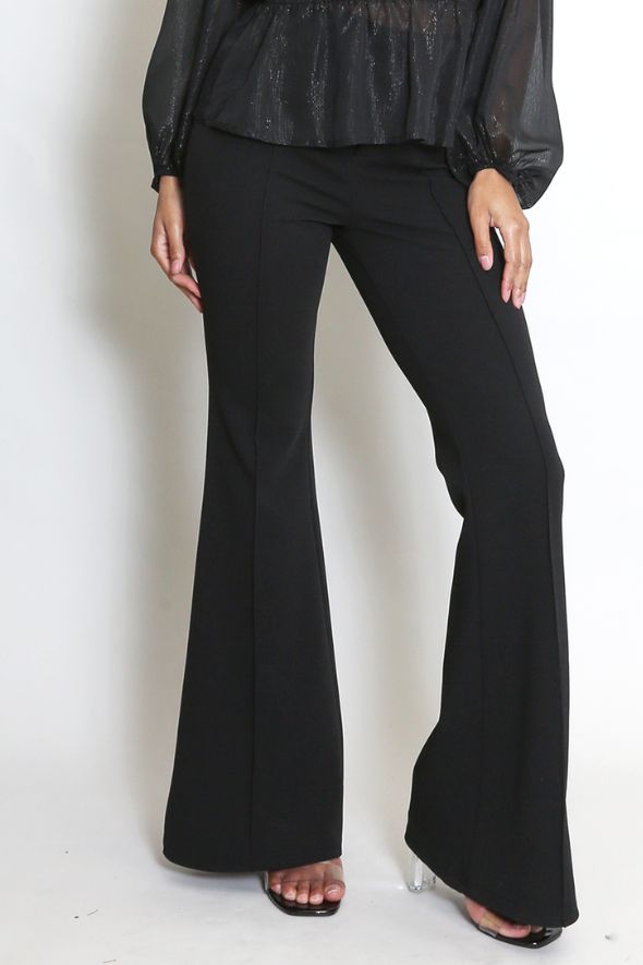Elevate your wardrobe with these striking Seam Front Flare Trousers in classic black. The distinctive seam detailing along the front creates a flattering silhouette that elongates the leg, while the flared cut delivers that coveted vintage-inspired look with modern edge. Crafted for comfort and style, these trousers transition seamlessly from office to evening wear. Perfect for anyone seeking a statement piece that combines timeless elegance with contemporary flair. A versatile essential that works with everything from crisp white shirts to bold tops.