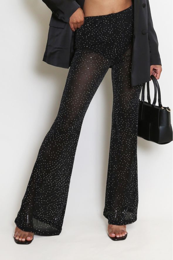 Stud Trim Mesh Flare Hem Trouser Black