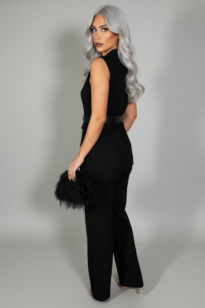 Waistcoat & Trouser Co Ord Set With Belt Black