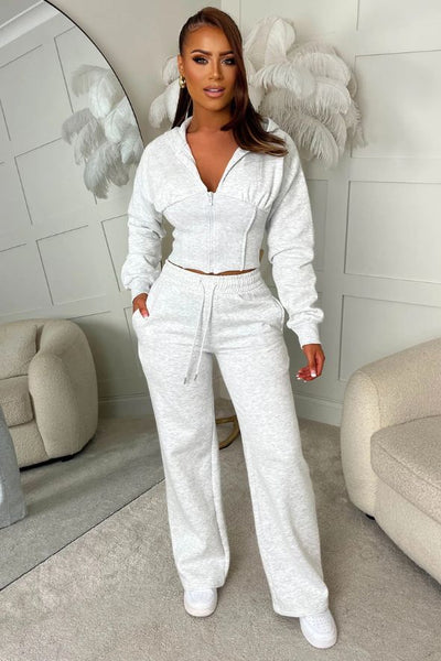Cropped Zip Up Lounge Co-ord Marl Grey