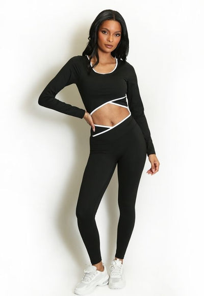 Long Sleeve Contrast Hem Top & Leggings Set Black
