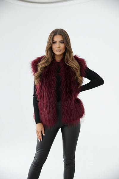 BLACK LONG LINE HOODED GILET WITH STRAP DETAIL