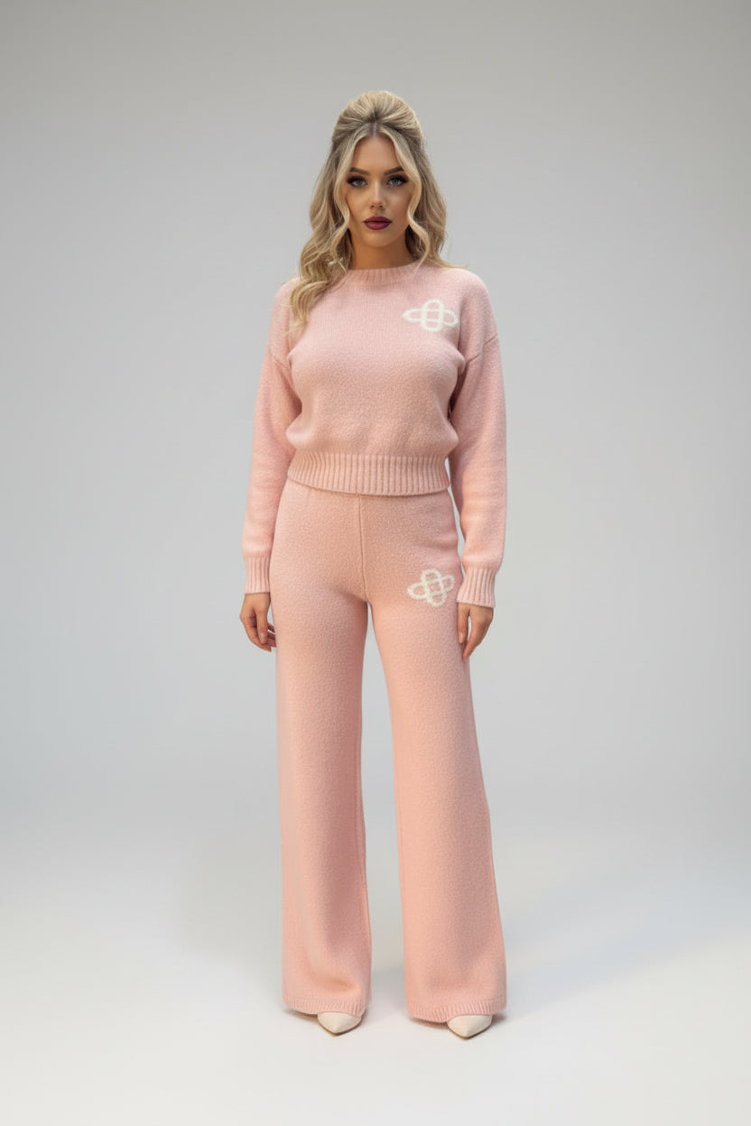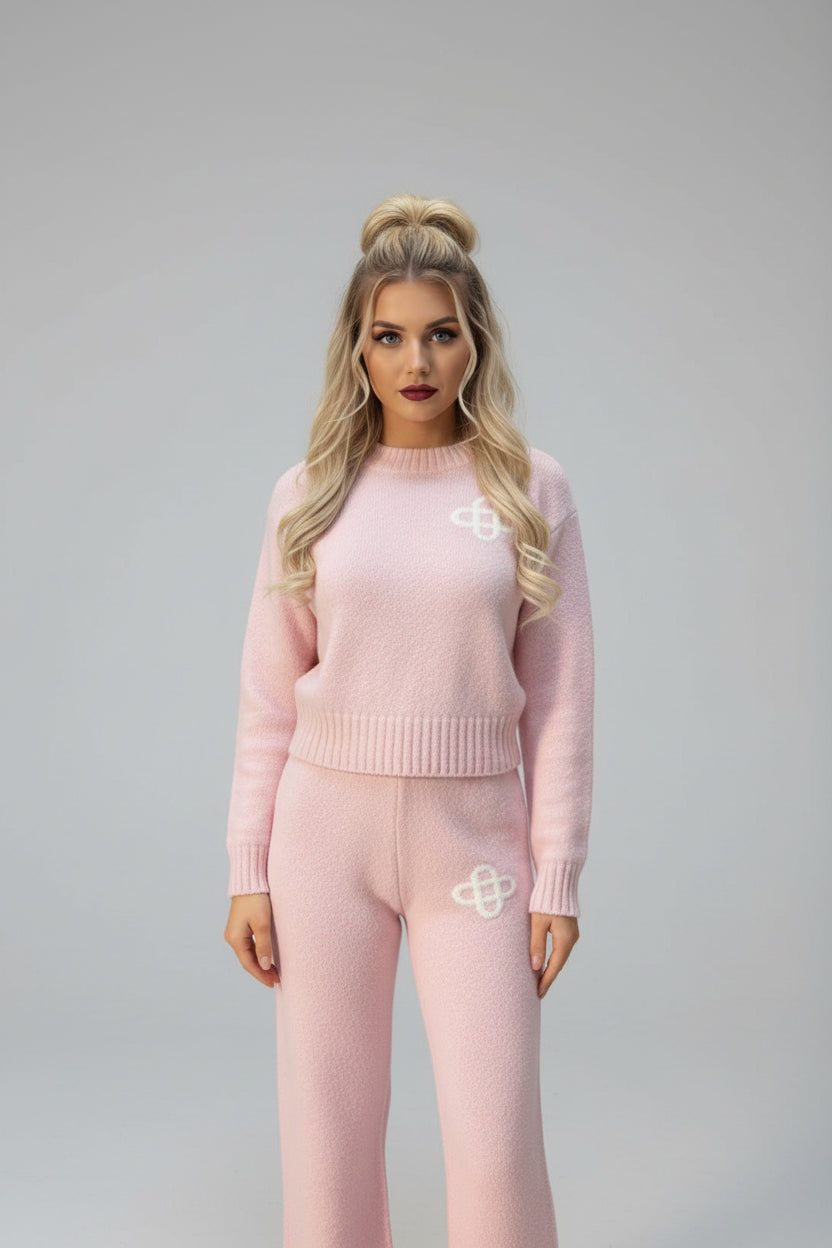 Elevate your wardrobe with this striking Pink knitted set, featuring a cropped silhouette that flatters every frame. The emblem detail adds a touch of sophistication and personality, making it perfect for layering or wearing as a statement piece. Crafted from quality knit fabric, this versatile two-piece set transitions seamlessly from casual outings to evening occasions. The rich burgundy hue complements all skin tones and pairs effortlessly with your existing pieces. Invest in a set that combines comfort, style, and timeless appeal.