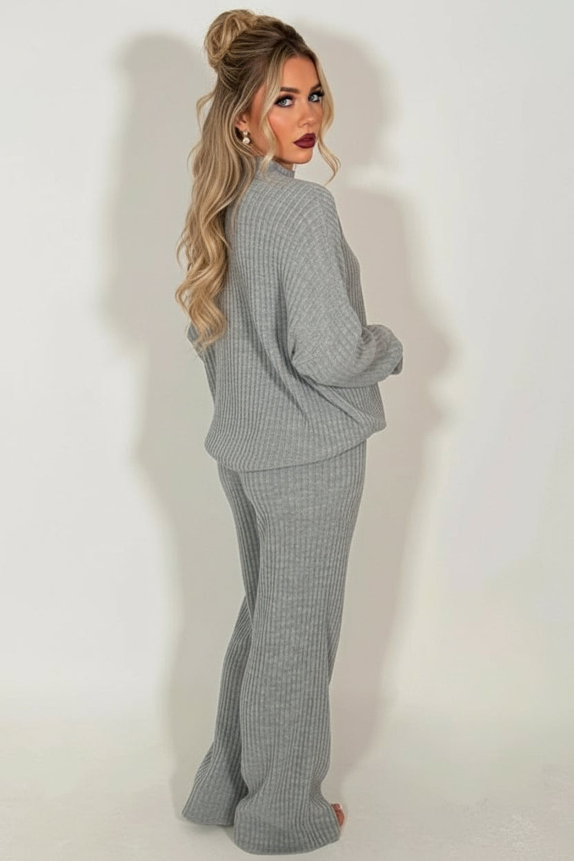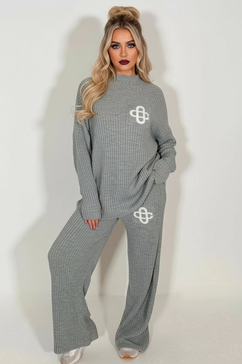 Rib Knitted Lounge Set With Contrast Emblem Grey
